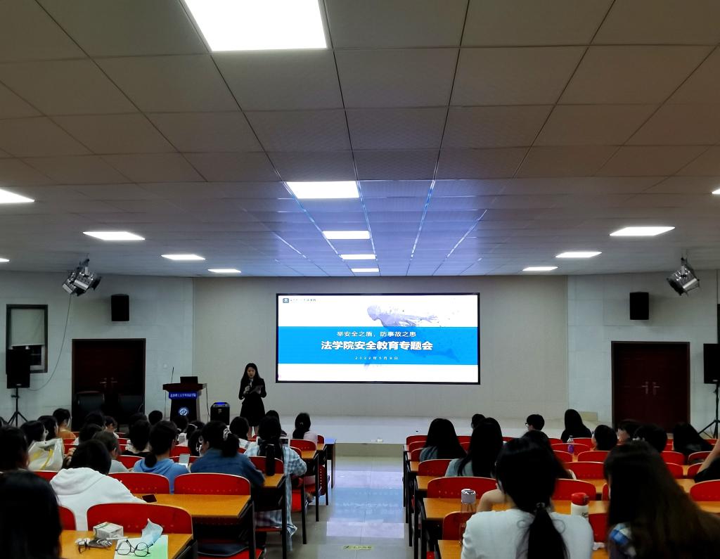 2022年5月9日晚,法学院在文科楼圆厅举行安全教育大会,全体院领导,部分班主任代表、辅导员以及云塘校区全体学生参加会议。