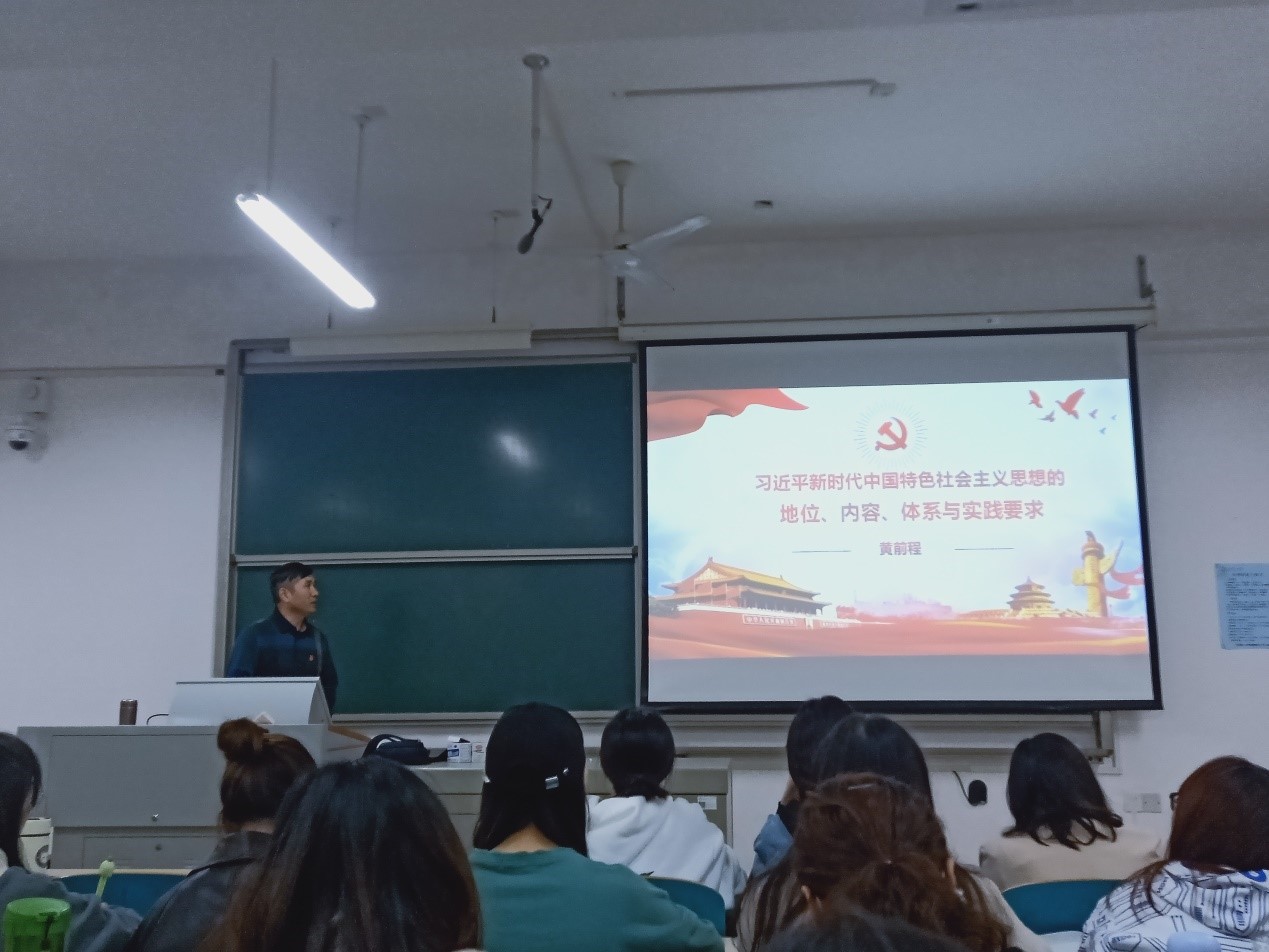 黄前程老师以习近平新时代中国特色社会主义思想理论为主题,从习近平新时代中国特色社会主义思想的历史地位、主要内容、科学体系以及实践要求展开讲解。