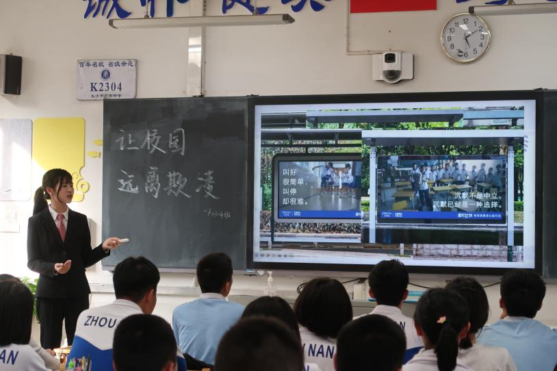 4月23日下午,在长沙市周南中学演播厅里,一场别开生面普法小课堂开讲啦!