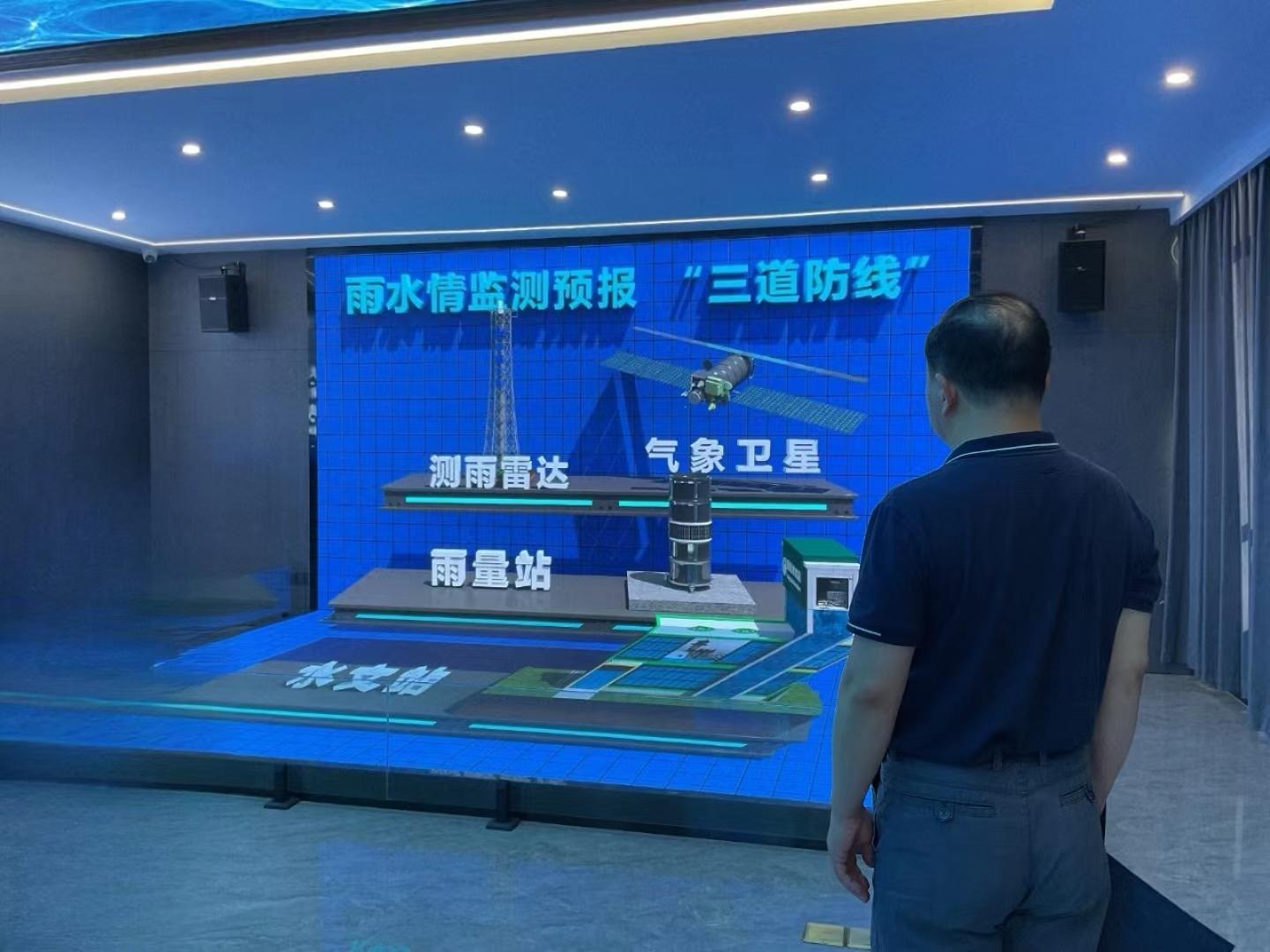 (左图:观看水利测雨雷达系统;右图:学习“三道防线”治水经验)