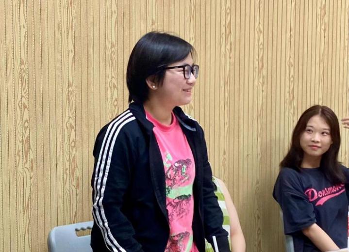 最后,法学院研究生会主席陈珮瑶对新生进行了招新宣讲,从研会是什么、研会做什么、为什么加入研会这几方面展开,详细介绍了院研会的部门风采和工作成果。