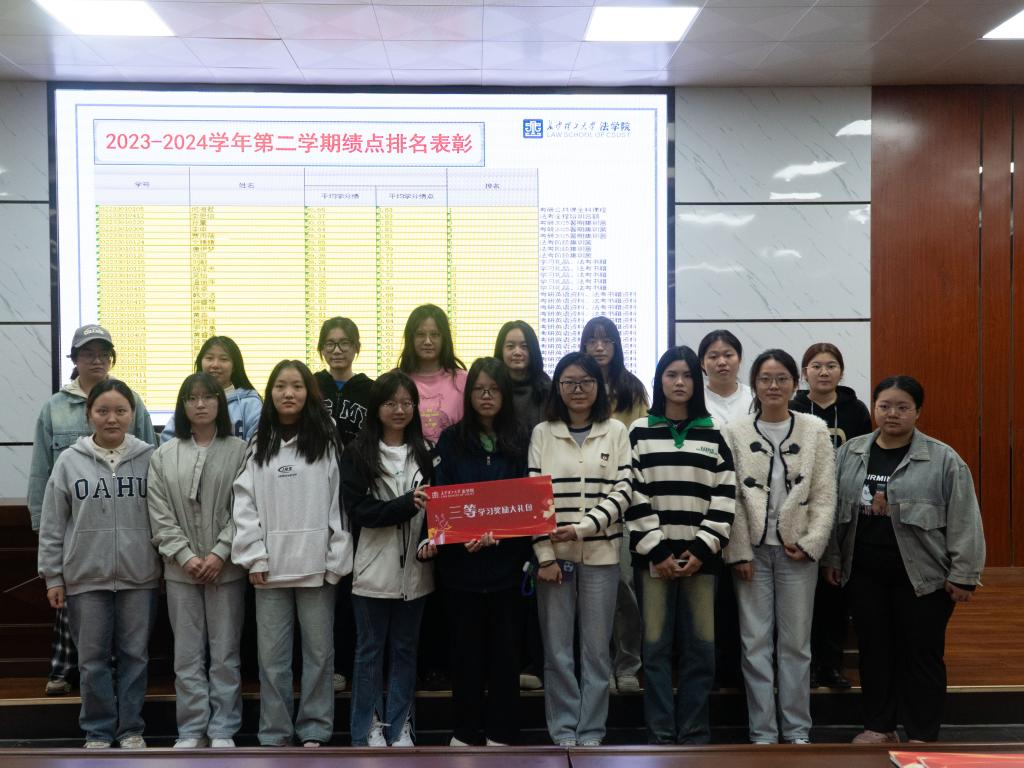 接着,孙佳乐就2023-2024学年第二学期的绩点排名和入学以来的绩点排名情况进行表彰,并为年级前30名的同学们颁发奖品、进行合影留念。她鼓励全体同学在接下来的学习中要向这些优秀学子们看齐,端正学习态度,重整旗鼓、砥砺前行。