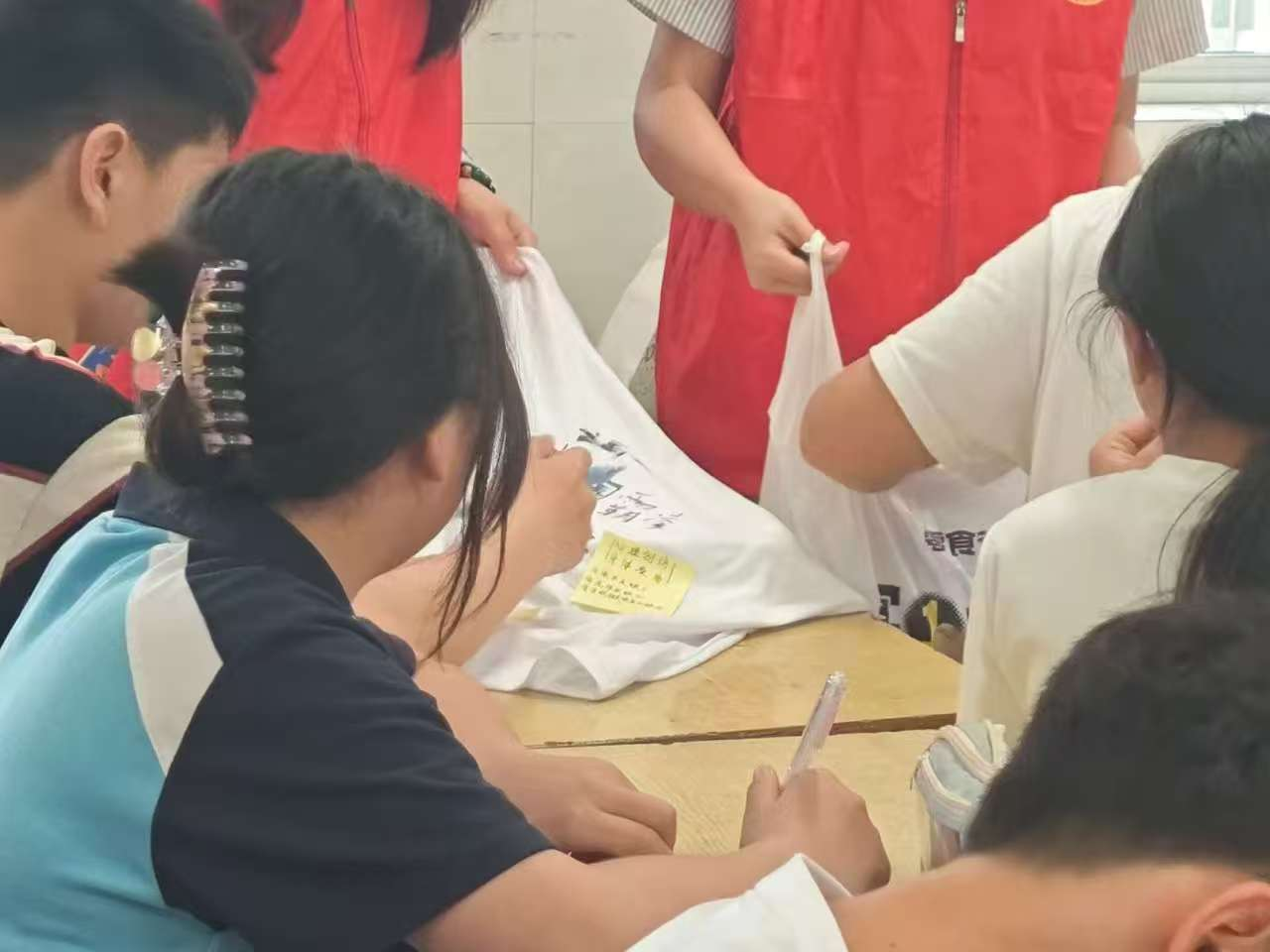 在“法律护盾行动”环节,志愿者们发放便利贴,引导同学们写下自己应对霸凌的答案,并将彩色便利贴覆盖在衬衫的“伤痕”上,寓意“法治力量修复创伤”。随着黑色字迹逐渐被覆盖,志愿者总结道:“校园霸凌会对被霸凌着造成不可磨灭的伤害,但法律和大家的关爱会惩罚欺凌者,修复伤害,像盾牌一样保护大家免受伤害。”