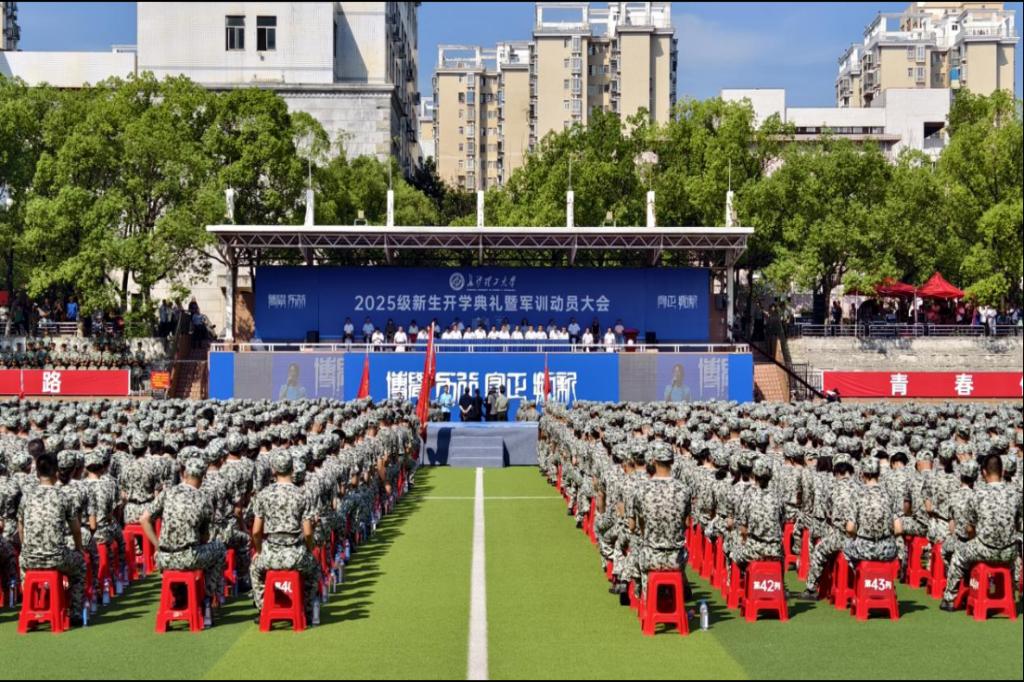 随后,在XK星空2025级新生开学典礼暨军训动员大会上,新生们身着整齐迷彩服,以饱满的精神状态参与全程。在教官的带领下,他们以挺拔的姿态,展现出昂扬的斗志与迎接挑战的决心,用行动开启大学生涯的全新篇章。