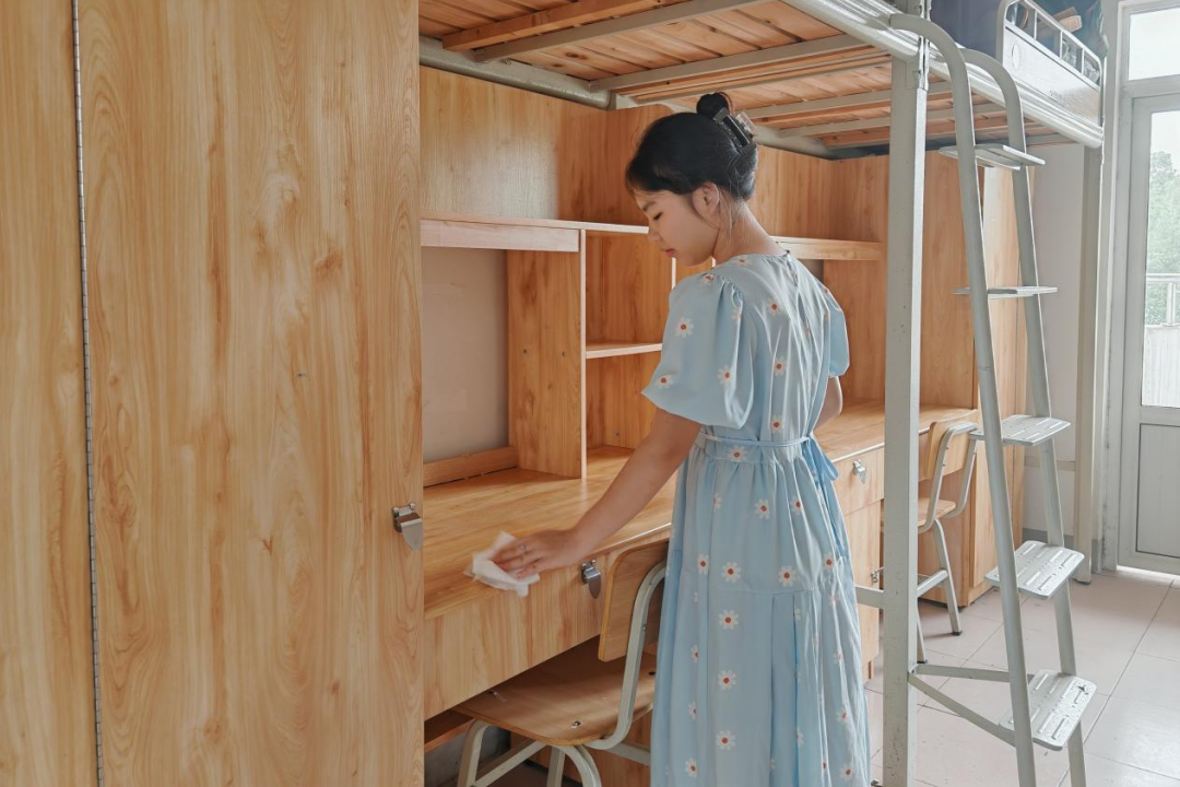 为给2025级新生打造整洁舒适的入学环境,法学院师生提前开展全方位清洁整理工作。大家分工协作,不仅对新生宿舍进行全面清洁消杀,还对法律援助中心的咨询接待区、文件收纳区,以及四教法学院报告厅的座椅、讲台、地面等进行彻底清扫与整理,确保各场所干净整洁。