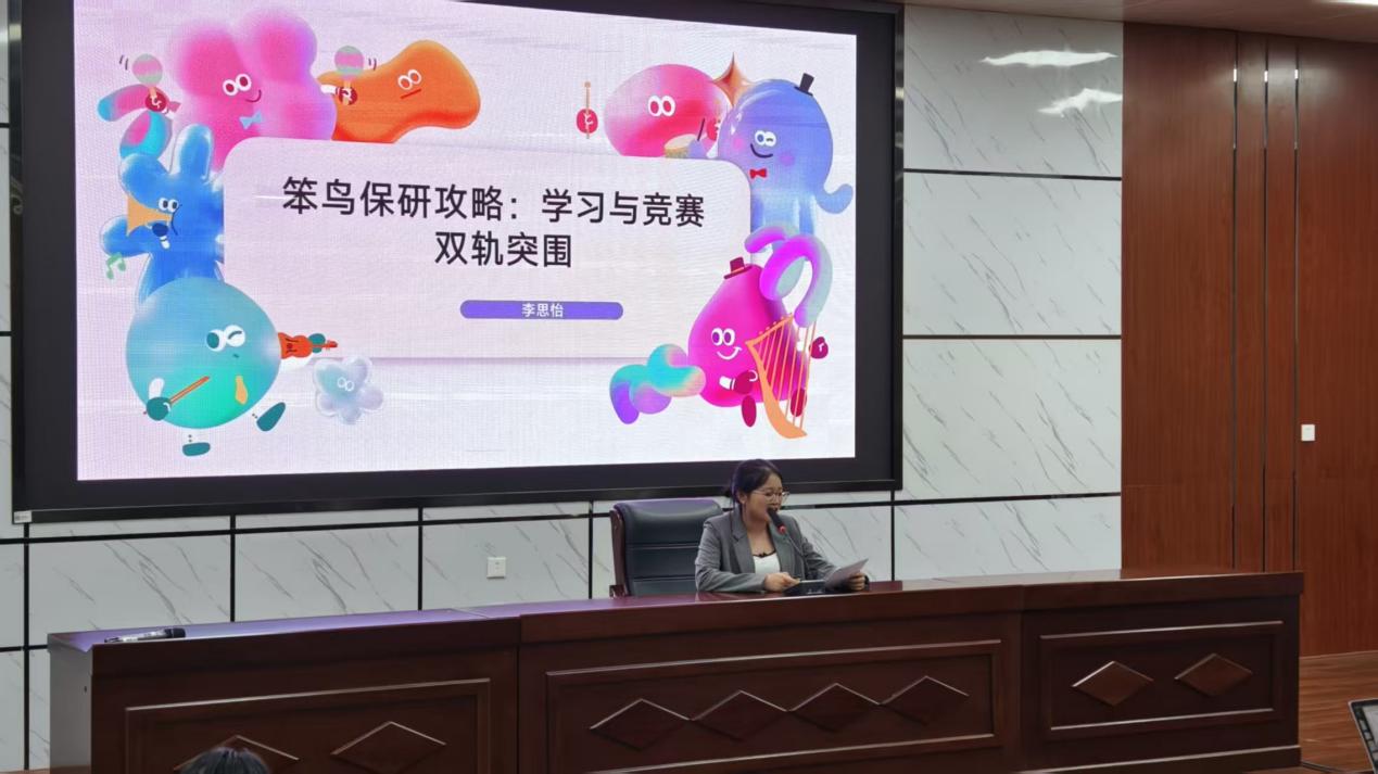 已保研至湖南师范大学的2022级李思怡同学以“笨鸟先飞”为主题,分享了她的保研心得。她强调,尽早明确目标、合理规划时间、持之以恒的努力是成功的关键。她鼓励学弟学妹们从大一开始夯实基础,积极参与学科竞赛与社会实践,不断提升综合能力。