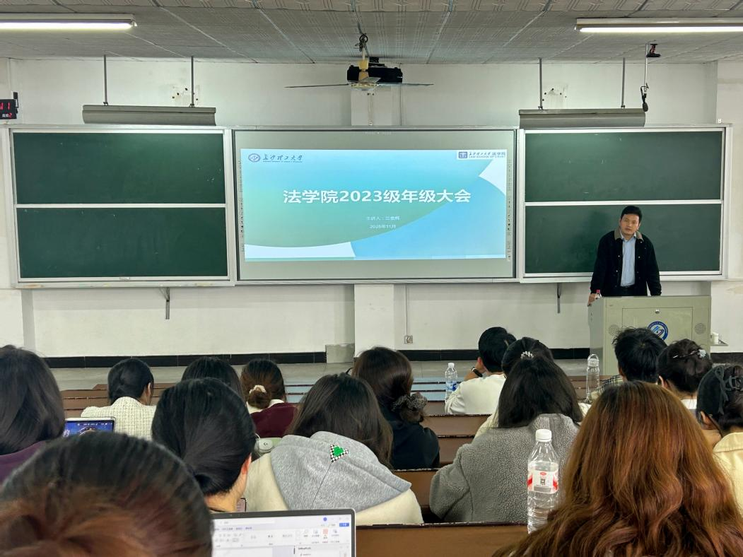 为帮助学院2023级学生明晰未来发展路径,进一步针对寝室长进行有针对性的培训,11月4日下午,学院在十二教召开了2023级本科生年级大会。会议由年级辅导员兰贵辉主持。