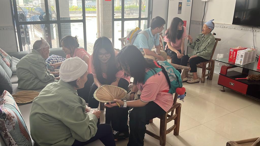 青春向党,深学笃行。7月7日一早,同学们早早来到贺龙纪念馆接受革命教育,追忆先辈功勋,感受信仰力量。参观完贺龙纪念馆,同学们步行来到桑植县洪家关光荣院,这是一座坐落在洪家关东北角上坡上的院子,门前有棵马桑树,贺锦斋烈士墓也在门前。贺晓英向同学们介绍了光荣院中老人们的具体情况,尤其是带着同学们回忆起了她与贺锦斋烈士遗孀戴婆婆相处的10年岁月,她说:“戴桂香每天都会到贺锦斋墓前坐,为贺锦斋唱《马桑树儿搭灯台》这首桑植民歌,她这一守就是67年。”讲到动人之处,贺院长潸然泪下,同学们也为之动容。随后,同学们将自己准备的慰问物资搬进每一位烈属老人的房间,在与老人们的交谈中,同学们深刻感受到红色政权来之不易,更加砥砺了珍惜当下、学成报国的决心。临走前,全体实践团同学向老人们深深鞠躬,致敬烈属、致敬历史。