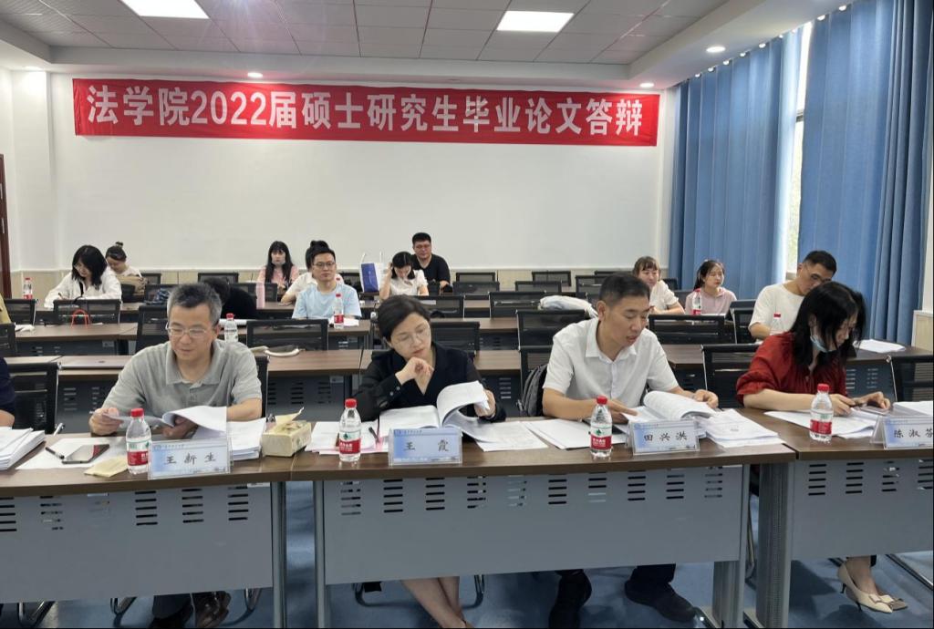 答辩会严格按照学校硕士学位授予工作实施细则进行。在经过中期检查、预答辩、论文盲审、答辩资格审查等环节后,我院共有26名硕士研究生参加本次毕业论文答辩会。答辩主席简要介绍答辩的具体流程,宣布2022届硕士研究生毕业论文答辩会正式开始。答辩会包括个人陈述、专家提问、学生答辩等环节,参加答辩的同学分别从选题来源及意义、论文框架、论文主要内容、论文创新点等方面进行阐述。随后,评委老师对每位同学进行了点评和提问,并就进一步完善论文提出了针对性建议。答辩同学在认真听取答辩委员会专家意见的基础上,以小组为单位依次对委员会专家提出的问题作出回答,并详细记录相关建议,答辩委员会专家则根据学生整体的答辩情况填写答辩表决票。最后,由答辩主席对本组研究生学位论文答辩进行扼要总结,宣布论文的答辩结果。至此,法学院2022届硕士研究生学位论文答辩工作顺利完成。整个答辩过程公开透明,严谨公正,流程规范。