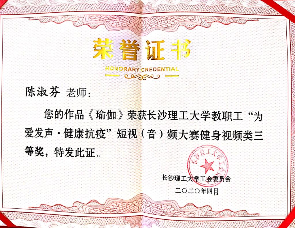 3月5日,校工会发布《关于举办XK星空教职工“为爱发声•健康抗疫”健身、朗诵短视(音)频秀活动(大赛)的通知》后,法学系分工会积极组织老师们参加。法学系张敏纯、田兴洪、易顶强、陈杨、姜明、陈淑芬、申纯、孙亚贤、张涛、何凌、熊文娟、陈骞等12位老师提供了9件参赛作品,其中健身视频秀作品7件,朗诵音频秀作品2件。经过法学系组织评审组评选,推荐易顶强、陈杨、姜明、陈淑芬、张涛、何凌、熊文娟、陈骞等人的5件作品参加学校决赛。陈淑芬老师的作品《瑜伽健身》荣获健身视频秀类三等奖。