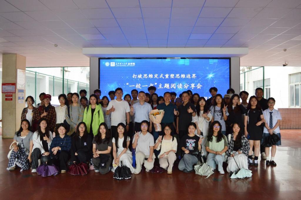 5月7日下午,在金盆岭四教报告厅,主题为“一校一书——经典、精读、经世”——《学会提问》读书分享会顺利举行。院党委书记龚文斌、副书记汪伦、党委委员陈骞出席,到场的有法学2404班及闻讯而来的其他同学120余人。