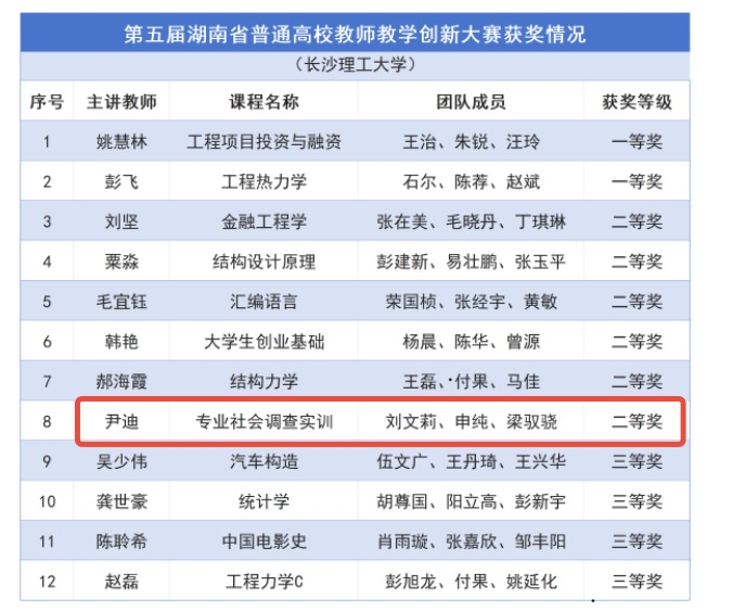 热烈祝贺我院尹迪老师及其团队在第五届湖南省普通高校教师教学创新大赛中表现优异,经过激烈角逐,最终斩获二等奖!