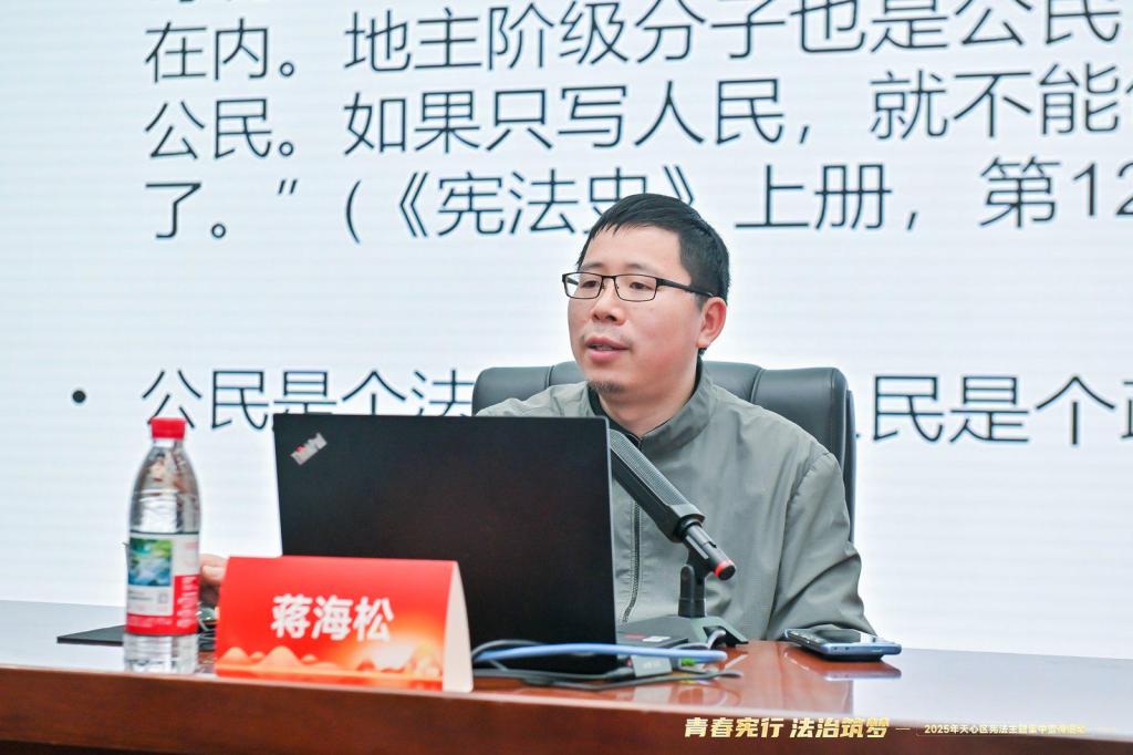 法治专题讲座环节,湖南大学蒋海松教授以“宪法权威和宪法实施”为主题,结合鲜活案例深入浅出地解析宪法精神,带领学校300名青年学子深刻理解宪法作为根本大法的时代价值。