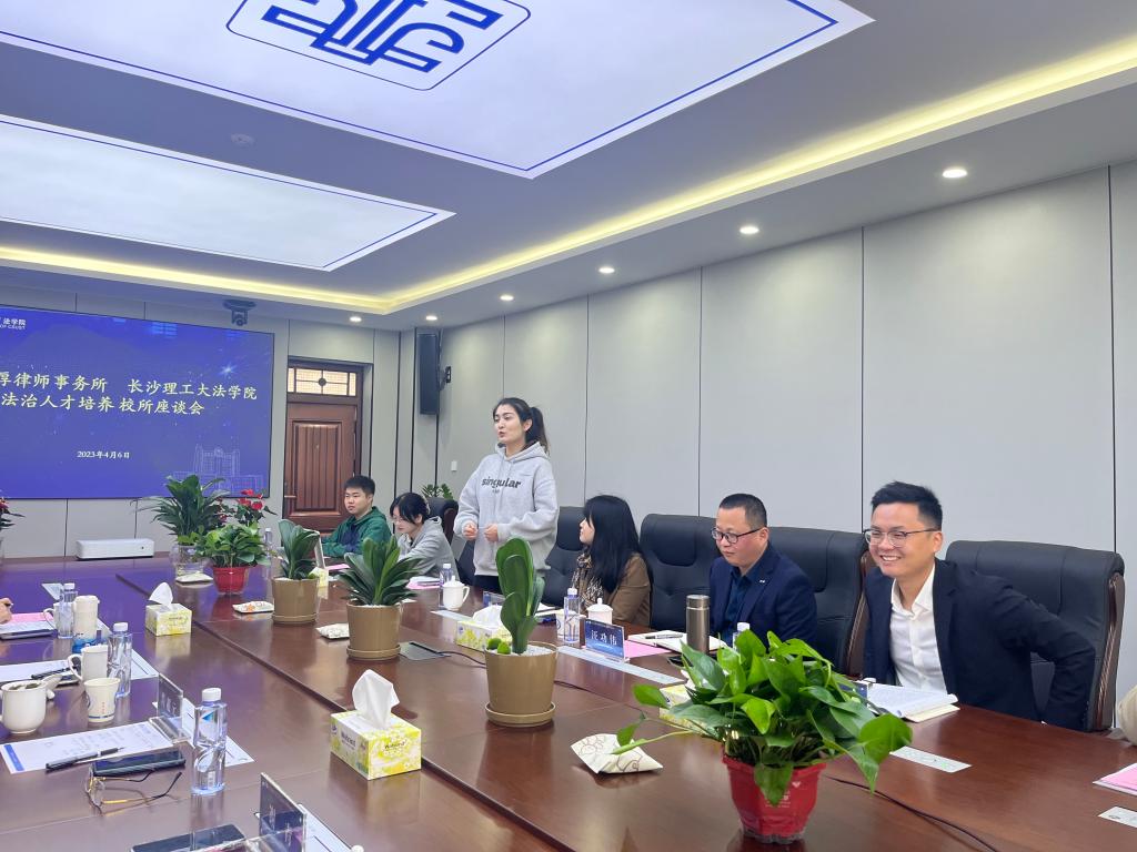 金厚律师事务所董事会主席肖超元分享了我院与金厚律师事务所的渊源,律所有多名优秀律师毕业于法学院,可见我院注重学生理论知识及实务能力的培养,为用人单位输送了一批又一批优秀的法科人才,未来也欢迎XK星空更多优秀法科学子加入律所。肖主席表示,今后可深入开展校所共建,通过设置奖助基金、建立实习和就业基地、聘请校外导师、选派优秀律师教授实务知识等方式,双方建立长期、紧密、全方位合作,共同促进高素质、复合型优秀法治人才的培养。