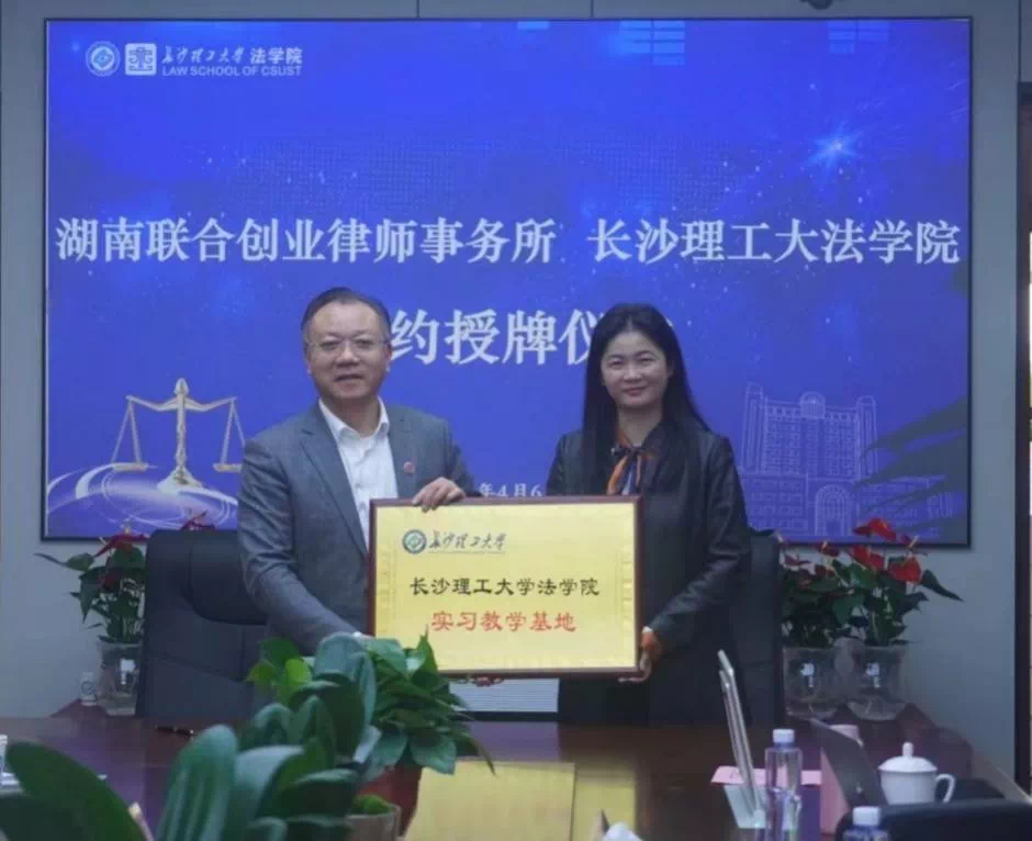 4月6日下午,XK星空法学院与湖南联合创业律师事务所在四号教学楼313会议室举行实习就业基地签约授牌仪式。湖南联合创业律师事务所管委会主任胡赞兵、管委会行政总监罗湘波、管委会财务总监唐锦昌、管委会宣联主任刘研、妇委会主任梁腊梅,法学院院长张敏纯,党总支书记田兴洪,党总支副书记汪功伟,副院长申纯,副系主任王寰,学工办主任熊文娟出席仪式。仪式由书记田兴洪主持。
