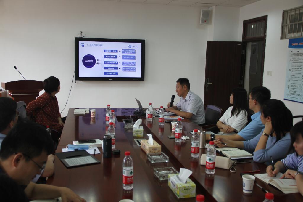 5月27日上午,学校辅导员理论和实践研究团队在文科楼A603外语学院会议实验室举行主题研讨沙龙,法学系党总支副书记田兴洪和外国语学院党委副书记刘坚分别做《法治思维与大学教育》以及《经济发展与大学教育》主题报告,团队负责人副校长谈传生教授和学校学工部、团委、招就处、研工部、心理中心人员以及各院(系)三十余名辅导员参与研讨。