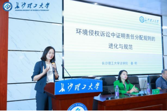 (湖南省环境资源法学研究会副会长、湘潭大学法学院副院长 吴勇教授作主旨报告) |