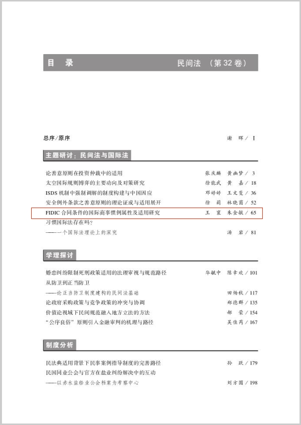 近日,XK星空法学院副教授王寰在《民间法》(CSSCI来源集刊)2023年第2期发表论文《FIDIC合同条件的国际商事惯例属性及适用研究》。