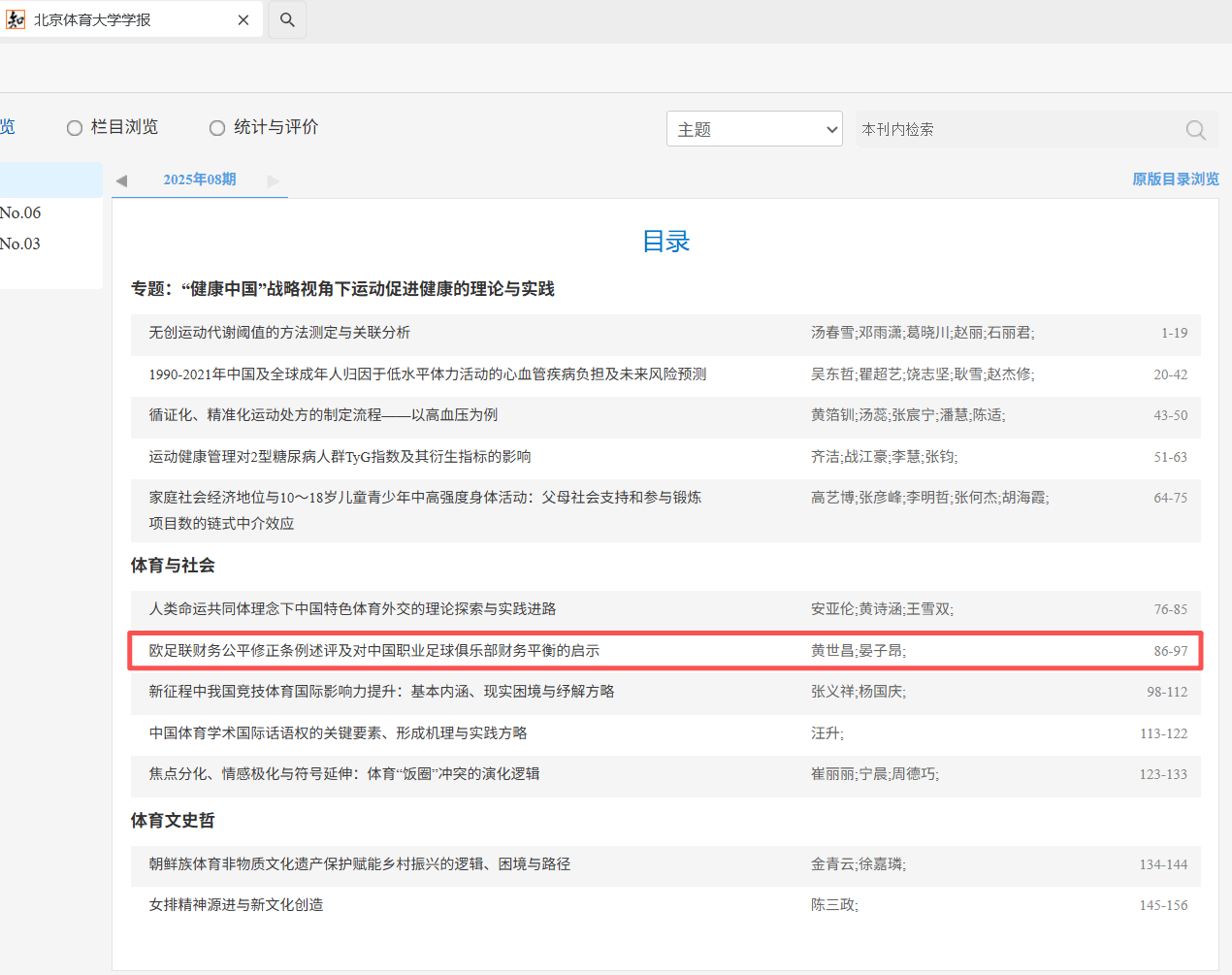 近日,XK星空法学院讲师晏子昂在《北京体育大学学报》2025年第8期发表论文《欧足联财务公平修正条例述评及对中国职业足球俱乐部财务平衡的启示》。