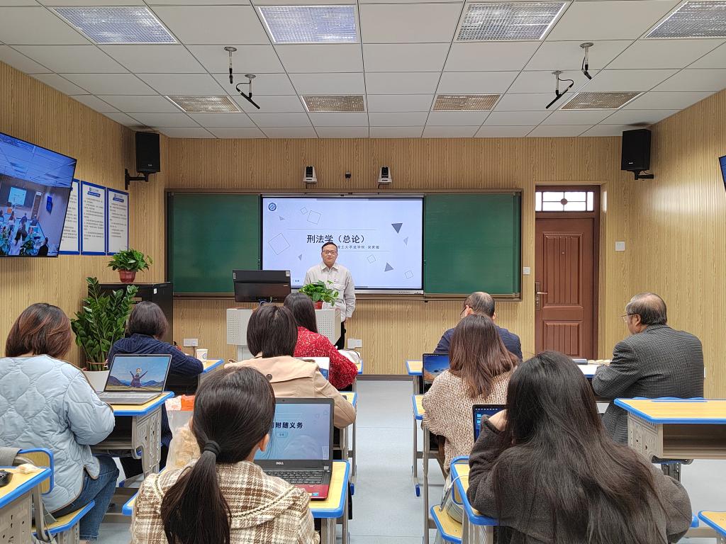 首先申纯副院长介绍了到场的评审专家、比赛的流程以及评分标准。随后宋家骏、刘明萍两名老师分别以《刑法学(总论)》、《国际经济法》两堂专业课,进行了课程思政教学展示。比赛中,两位老师结合课程特点,深入挖掘课程蕴含的思想政治元素和所承载的育人功能,通过融入时政热点、法治意识、家国情怀、社会责任、人文精神等要素,展示了良好的教学设计和教师风采。