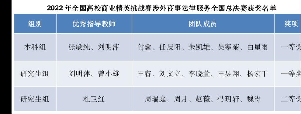 近日,2022年全国高校商业精英挑战赛国际贸易竞赛全国总决赛完美闭幕,在本次比赛中,由法学院本科生与研究生组成的三支队伍在指导老师和队员们的不懈努力下成功入围涉外商事法律服务赛道总决赛,勇夺该赛道一等奖两项,二等奖一项。此次竞赛共有来自全国132所高校的625支队伍参赛,共角出的14个一等奖中XK星空荣获两项,这是XK星空积极回应国家“加快建设涉外法治人才队伍”的要求,着力培养高素质涉外法律人才的集中体现。
