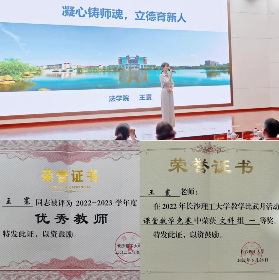 正是凭借着对教育事业的满腔热情与多年如一日的辛勤耕耘,王寰老师所教授的《国际经济法》,2020年在“XK星空在线教学示范周”活动中获得“线上教学示范周展示课程”,2021年在XK星空城南学院年度本科教育与人才培养工作考核中获得“教学优秀二等奖”,2022年获评XK星空优秀课堂教学示例和教师课堂教学竞赛一等奖,20234月获得第六届全国数字创意教学技能大赛湖南赛区省赛二等奖。