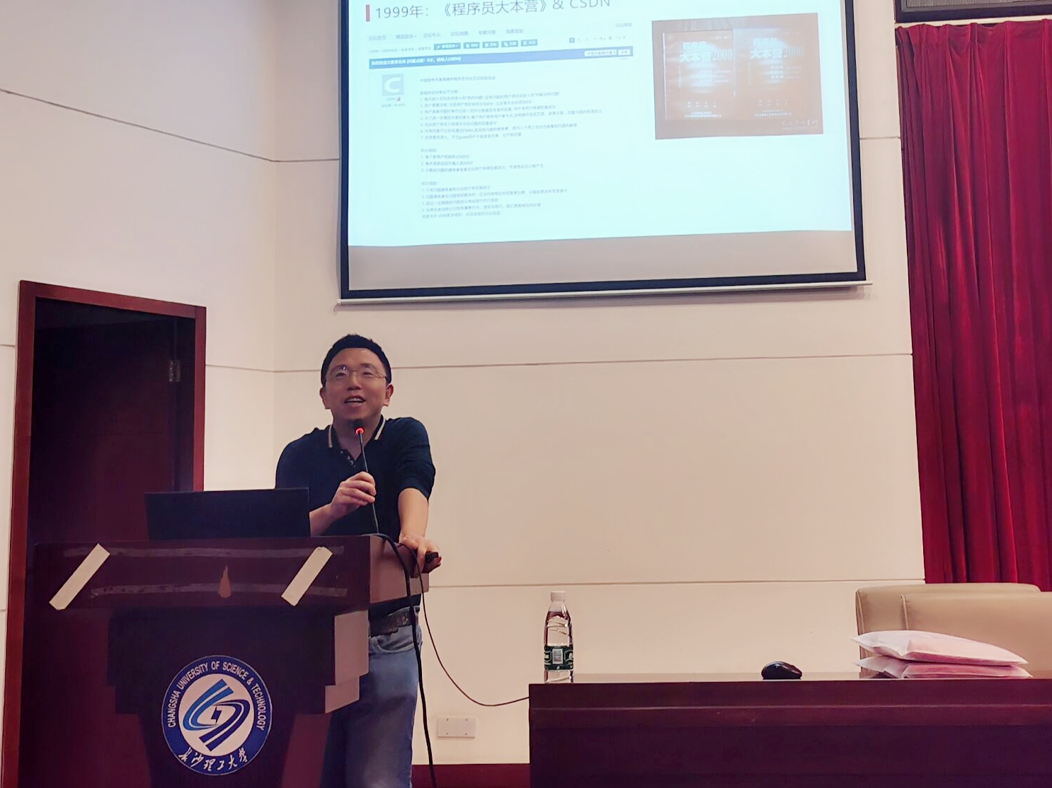 11月5日晚,由创新创业教育学院、计算机与通信工程学院联合举办的创新创业专题报告会在XK星空云塘校区图书馆学术报告厅举行,本期报告会的主题为“中国开发者的黄金十年及我的创业经历”。报告会的主讲嘉宾是CSDN创始人兼董事长、极客帮创投创始合伙人蒋涛。CSDN副总裁李超,以及创新创业教育学院和计算机与通信工程学院有关负责人出席,全校360余名学生参与了此次报告会。