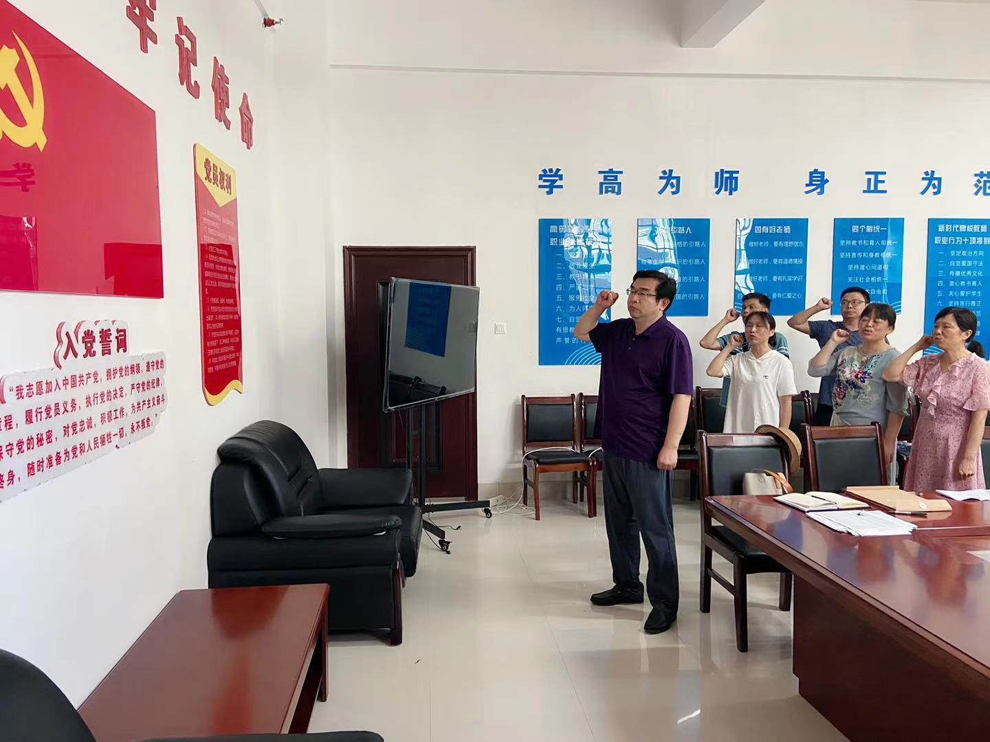 李凡同志首先带领全体党员重温了入党誓词。会上,李凡同志代表支部,就开展党史学习教育工作进行了述职。他汇报了党史学习教育开展以来总体工作情况,党史学习教育开展的成效,存在的不足以及下一步打算等方面。