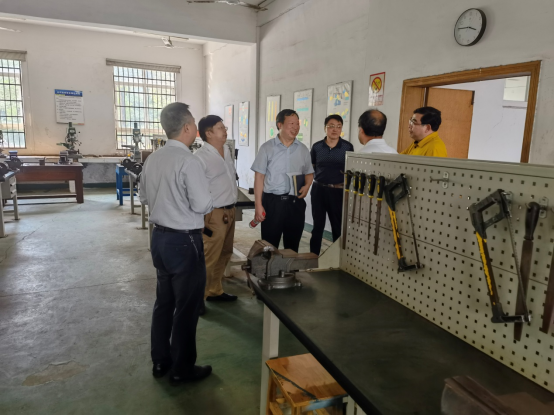 6 月 14日下午,副校长曾祥君到创新创业教育学院(工程训练中心)调研。曾祥君听取了学院各项工作汇报,详细了解了学院教师队伍的现状和需求,教学工作中存在的问题和困难。在学院直属支部书记李凡、院长蒋加伏、副院长刘志强、杨建军的陪同下,曾祥君现场察看了机械工程训练中心的数控铣实训室、工业机器人实训室、钳工实训室、车工实训室和数控加工综合实训室等教学实训场所并与机械工程训练中心部分老师进行了沟通和交流。