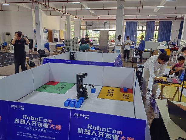 Robocom机器人开发者大赛已列入中国高等教育学会发布的《2020年全国普通高等学校学科竞赛排行榜》。2022届大赛分为编程、“中国历代绘画大系〞数字创意和机器人3个赛道,旨在促进智能机器人技术的创新应用能力,通过前沿技术仿真赛、智能机器人场地赛、创新技术路演赛等多种比赛方式,为从事人工智能与机器人领域研究的高校院所和企事业单位提供一个全新的学习、展示、交流和竞技平台,在生物机理与跨模态类人学习机制等研究基础上,进一步探索跨模态人工增强与跨模态计算机制。2022年11月,经过全国各个赛区预赛,本次大赛决赛采取线上方式进行。