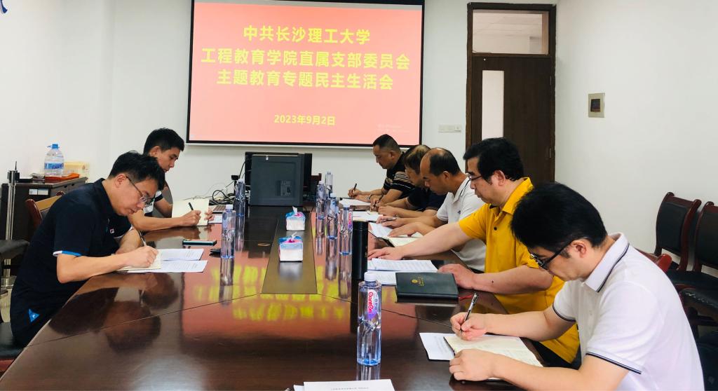 9月2日,工程教育学院班子召开学习贯彻习近平新时代中国特色社会主义思想主题教育专题民主生活会。直属党支部书记李凡主持会议,分管校领导钱国平、组织部副部长王煜坤到会指导,学院班子全体成员参加会议。