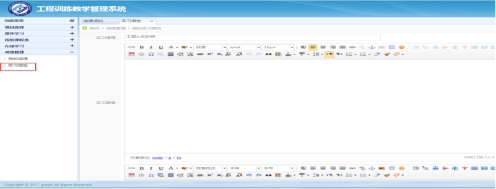 操作如下图:在左侧菜单栏点击“课外学习”,可在线观看课外学习视频。点击“实习报告”,可在线撰写观后感和实习报告。