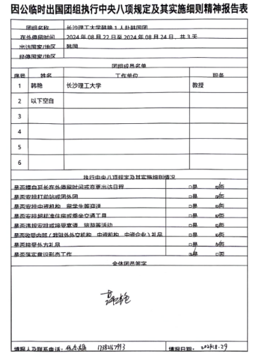 三、《因公临时出国团组执行中央八项规定及其实施细则精神报告表》