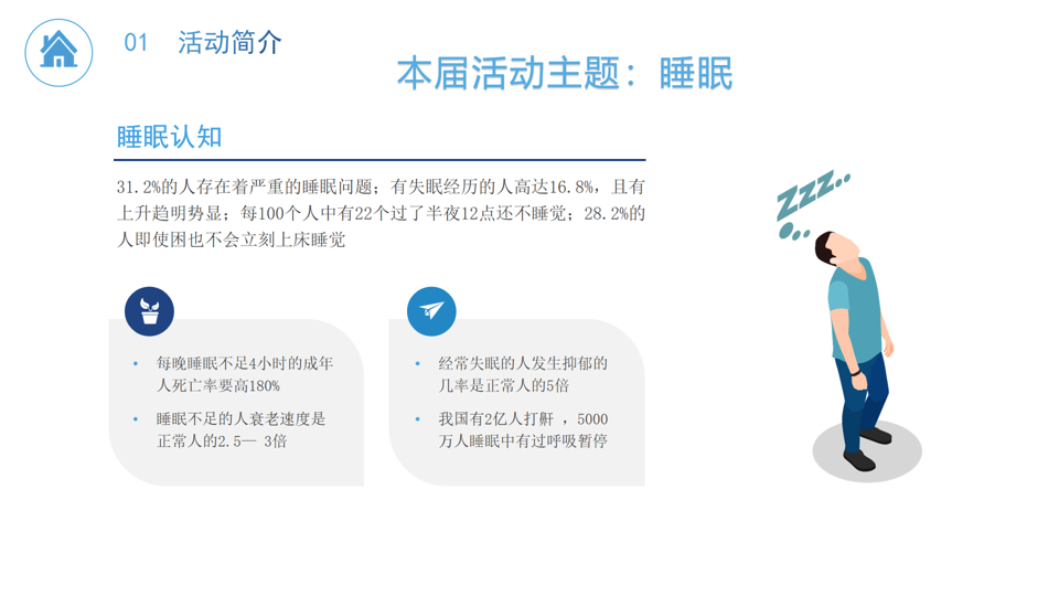 本次主题班会作为精神卫生日宣传教育活动的重要一环,聚焦于与学生日常学习生活息息相关的“睡眠与心理健康”议题。各班在辅导员或心理委员的带领下,通过知识讲解、案例分析、互动讨论等多种形式,向同学们系统普及了充足、高质量睡眠对于维持情绪稳定、提升认知功能、缓解心理压力的关键作用。班会详细阐释了睡眠不足或睡眠节律紊乱可能引发的焦虑、抑郁等情绪问题,以及其对学习效率与生活质量的负面影响,并提供了诸如建立规律作息、创造适宜睡眠环境、减少睡前电子产品使用等实用性的改善建议,引导同学们深刻认识到“好好睡觉”是呵护心理健康不可或缺的基石。