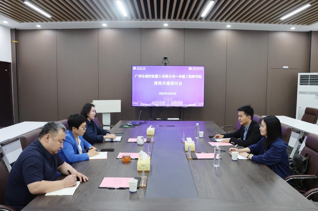 4月24日下午,广州市威控机器人有限公司副总经理王帆、市场总监周素霞来院进行课程建设研讨会及科研合作交流。卓越工程师学院院长韩艳、党委副书记陈华、副院长吴钢出席会议。会议由陈华主持。
