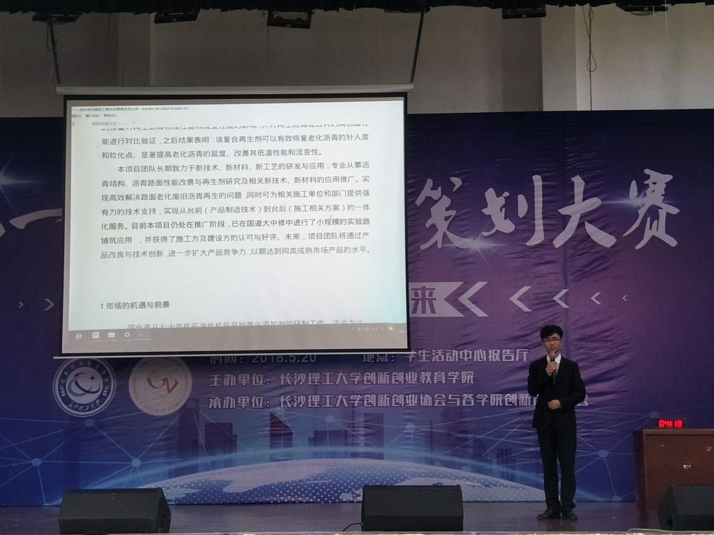 全校有260多支团队报名参加了比赛,经过初选和预赛,最终有20支决赛队伍脱颖而出,参加了决赛,参赛的答辩选手从项目背景、市场分析、核心竞争力、盈利模式等方面展示了各自的项目。充分利用了限定的时间运用图像结合、数据分析等多种方式对各自的项目进行了讲解。各个项目所学专业知识互联网技术相结合,从环保、无人机、新型农业、道路维护等多个角度创新,并落实为详实的策划案。