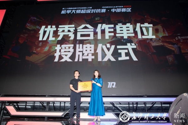 XK星空卓越工程师学院院长韩艳和大疆RoboMaster高级运营总监杨明辉分别介绍了学校的创新创业人才培养体系实践探索以及RoboMaster机甲大师赛近年来的开展情况。大疆RoboMaster代表大赛组委会为XK星空授牌优秀合作单位。