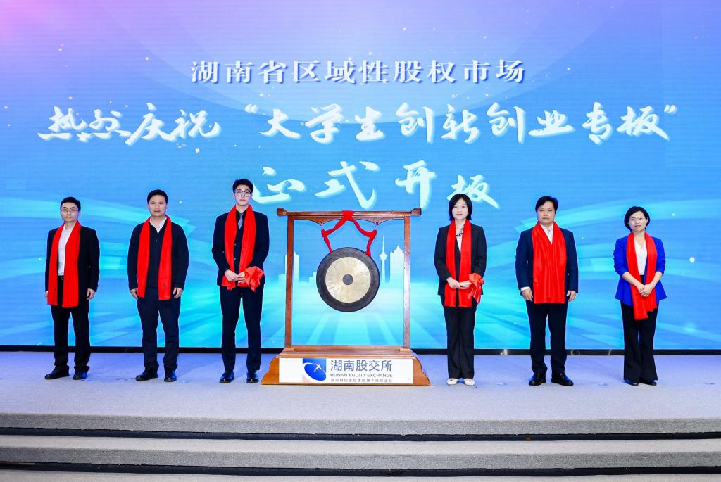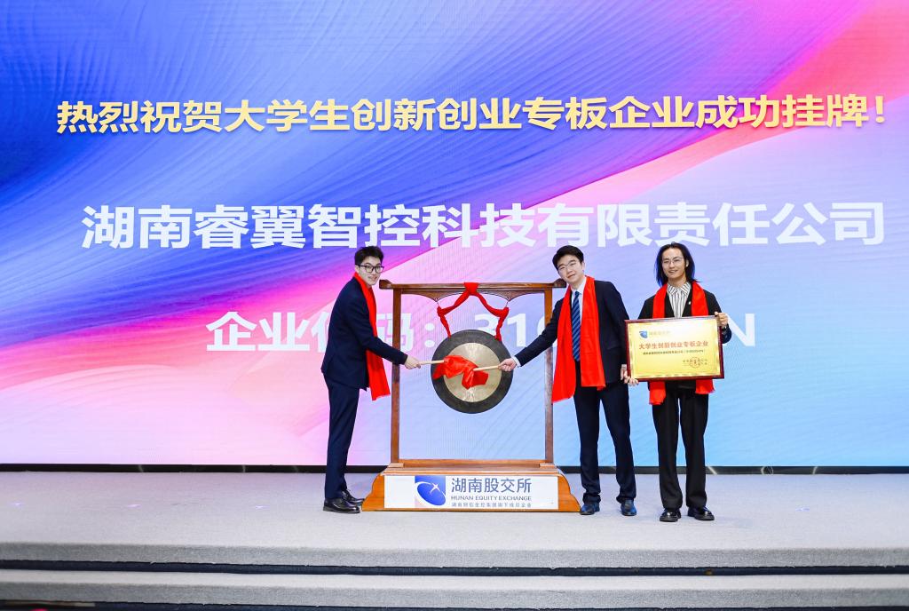 今天湖南省区域性股权市场大学生创新创业专板正式开板,首批16家大学生创新创业企业在湖南股权交易所挂牌,XK星空大学生创新创业园孵化企业湖南睿翼智控科技有限责任公司位列其中。公司负责人吴睿恩作为入板企业代表开板敲锣。