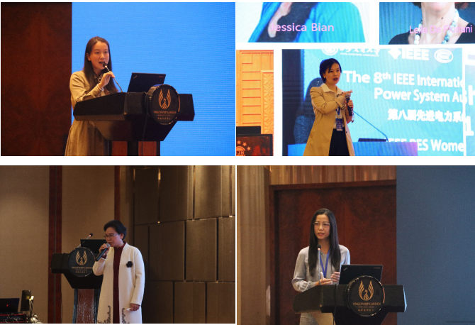 学院副教授邓丰主持“To be an intelligent, diligent, creative and self-confident female”的主旨报告环节。IEEE PES WIP主席李若梅女士、IEEE中国办事处项目经理王岚女士、湖南新能源工业协会执行会长陈丽华女士、华北电力大学电气与电子工程学院副院长刘崇茹教授四位电气能源领域女性杰出代表进行了生动而精彩的分享。每位嘉宾通过个人经历,研究方向,对周围的观察和思考等多角度,提出观点,勉励在场女性全力以赴工作,热情拥抱生活,希望女性工程师们不懈努力。自信地走在生活的广阔天地里,以智慧与魅力迎接每一天。引起现场观众的共鸣和阵阵掌声。