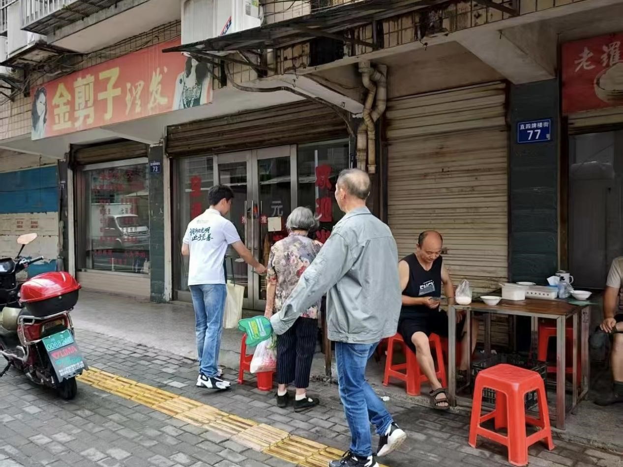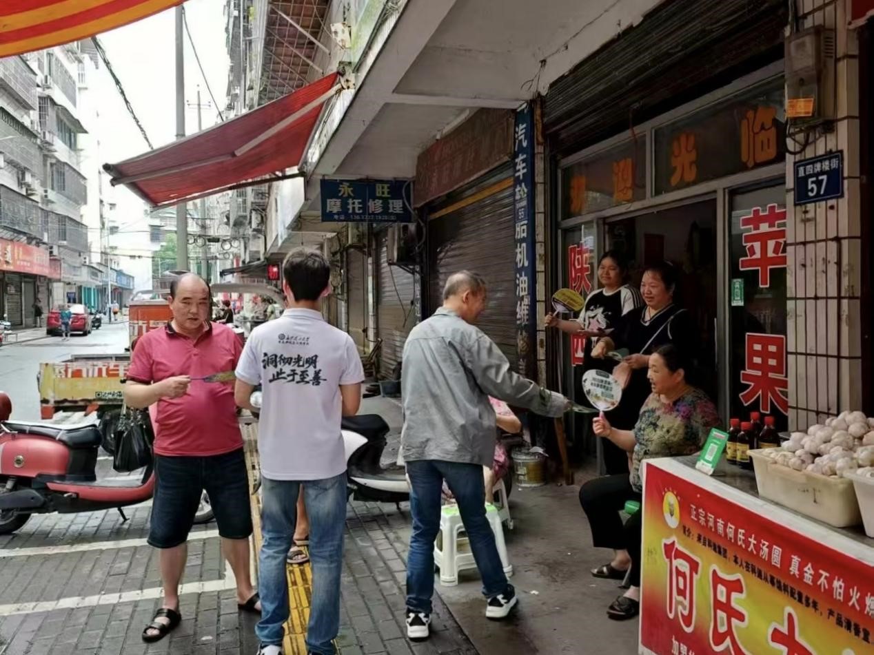 因小区需更换两台变压器,施工期间将临时停电两天。到达小区后,师傅先检查了电力设备的运行状态,随后实践队员和电工师傅们一边向居民分发准备好的小风扇,一边细致解释停电原因及施工的必要性,着重说明更换变压器是为了提升供电稳定性。面对居民提出的各类疑问,虽然听不太懂当地的方言,但是实践队员们还是耐心倾听,努力沟通回应,尽力消除大家的顾虑。