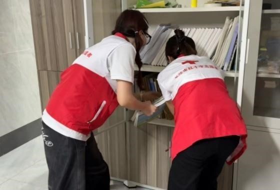 捐赠物资种类丰富,涵盖书籍、衣物、生活用品等。队员们首先对物资进行细致清点,随后有条不紊地开展分类整理:有人蹲在书架旁,将散落的书籍逐一归类,整齐放入书柜;有人负责日用品的分拣,归类后再有序摆上货架,方便后续分发物资;还有队员主动承担起较重物资的搬运工作,来来回回的身影在闷热的环境中穿梭,汗水浸湿了衣衫,却没人停下脚步,脸上始终带着专注的神情。