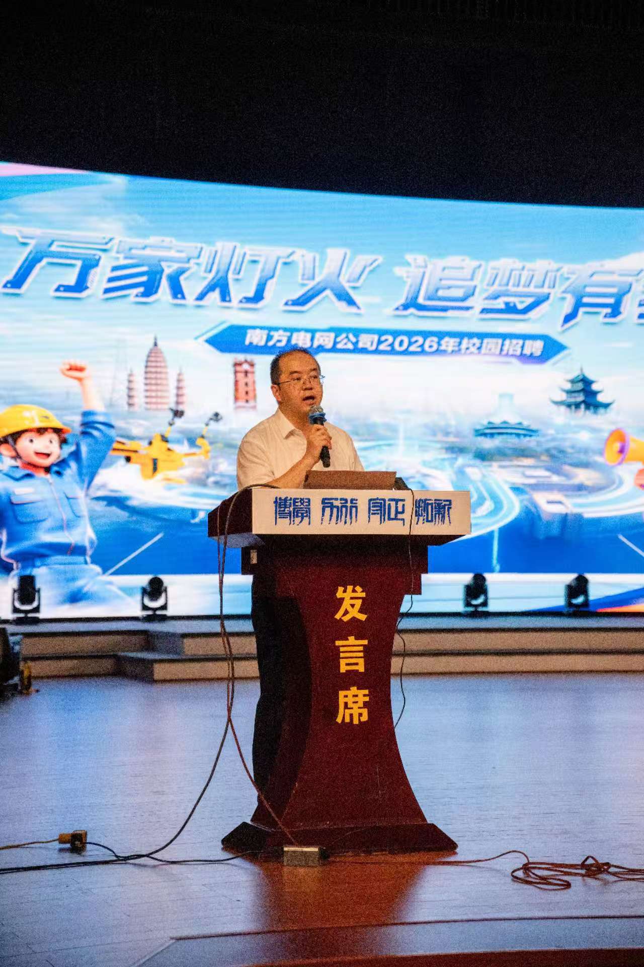 9月24日,中国南方电网有限责任公司2026届毕业生招聘宣讲会在XK星空云塘校区大会堂举行。云南电网有限责任公司人力资源部副主任谢汉竹一行来校宣讲,学校就业创业处处长田上,电气学院党委书记丁丹、党委副书记周巍等领导出席,千余名学子及部分家长踊跃参与,现场座无虚席,气氛热烈。