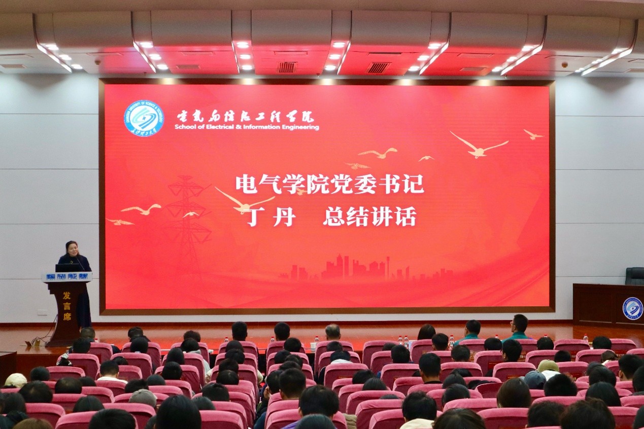 电气与信息工程学院党委书记丁丹在致辞中,向国网山东超高压公司团队致以敬意,并回顾了此前走访企业的深刻印象。她寄语学院学生,应以大国工匠为榜样,树立正确的偶像观,深刻领悟精益求精的“匠心”本质,努力成长为担当民族复兴大任的优秀电气工程人才。