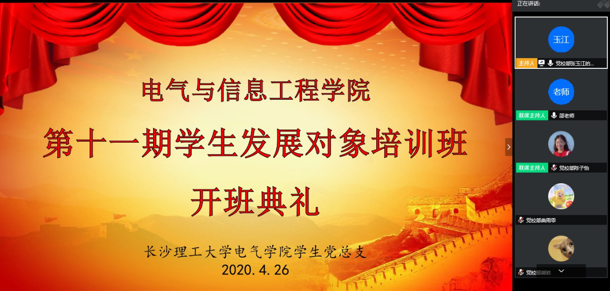 在4月26日举办的开班典礼上,学生党员代表、电气学院湖北学生临时党支部书记袁雨薇做代表发言并分享了她在抗疫期间的经历感悟,电气学院党委副书记陈仁凯围绕“如何在疫情影响下上好党课”的话题对学员提出要提高自觉性、深入理解课程内在逻辑关系的要求。院学生党总支副书记邵巧艳解读了培训班管理条例并强调大家要端正态度,在学懂、弄通、悟透、做实上下功夫。