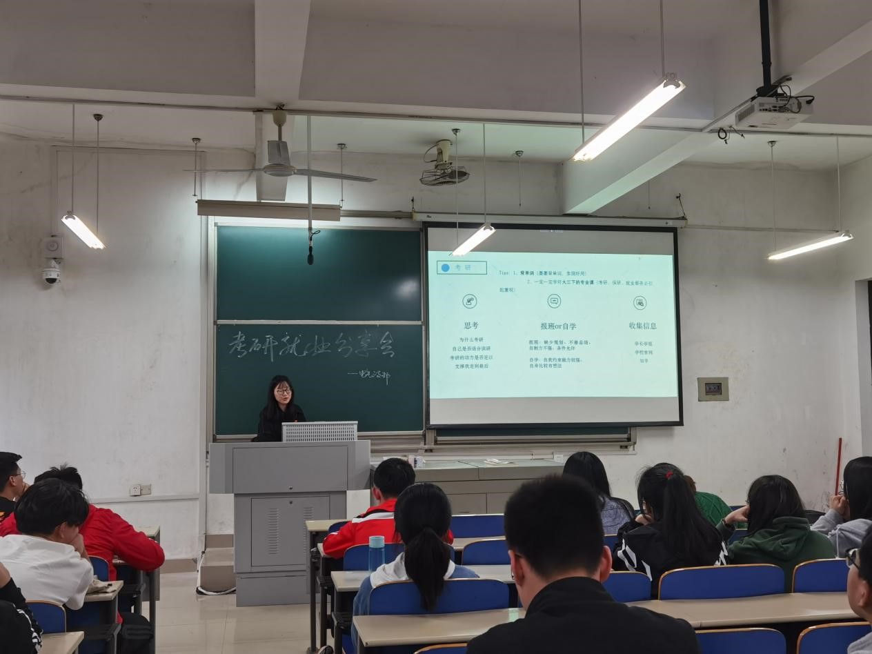 雷正豪、杨丹、刘萍、张玉江、王春贺、罗逸夫六位同志则结合自己考研的院校及考研类型向同学们介绍了本专业2017级考研的大致情况,分享了考研择校、备考、复试等方面的经验;此外,还特邀了已毕业的16级党员卢盼、郑英俊、张欣杨三位同志以线上视频的形式介绍自己的研究生生活和读研体会。