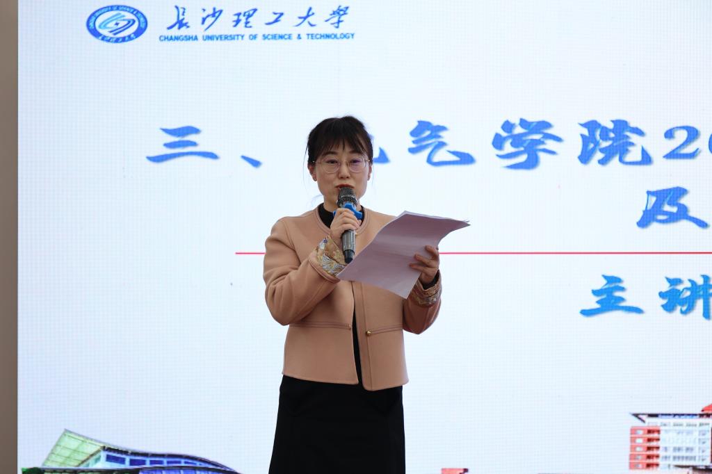 杨洪明在行政工作报告全面总结了学院2024年的工作与成绩她指出,2024年是“十四五”规划实施的关键之年,学院党委把舵定向,党支部强基固本,全院师生奋力拼搏,在人才培养、学科科研、师资队伍建设等各方面取得了一系列成绩,特别是能源动力专博点申报成功、科研进校经费首次突破8800万元并跃居全校首位,为学院高质量发展交出了满意的答卷同时,也指出了学院现阶段存在的问题与挑战,提出了学院下一阶段发展的方向目标与举措。她强调2025年是“十四五”规划实施的收官之年,也是国家与学校实施进一步全面深化改革的关键之年,学院要聚焦国家重大战略和湖南“三高四新”大力推进人才培养转型体系向纵深发展,加强师资队伍建设,培养高层次人才,加强攻关突破基础研究瓶颈难题,全力推进人才培养与学科科研水平上新台阶