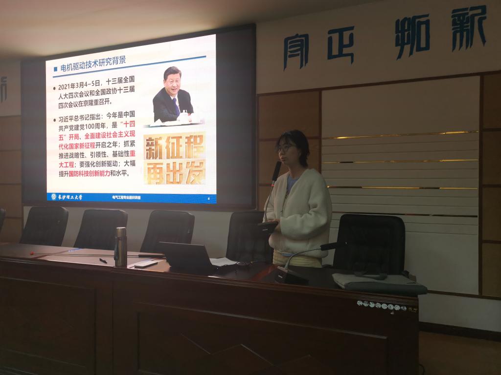 4月25日晚上,电气学院在工科一号楼B503会议室,举办了通识教育学术讲座,我院岳雨霏博士做了“基于电力电子变频器的电机驱动技术发展及应用前景”的主题讲座,课题组王旭红教授、周腊吾教授、关维德博士、教务办黄建华、周倩、学工办范凯和85名相关学生聆听了讲座。
