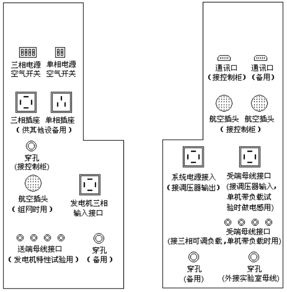 (7) 每块屏上每条支路出线处设置三相插孔,以便进行短路模拟测试;同时在I母及II母的电压互感器支路上设置三相插孔以便模拟母线短路。(配电测控屏正面每个设备符号旁设置一个有机玻璃的标识卡插套,可方便地更换设备标识卡)