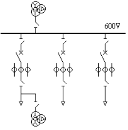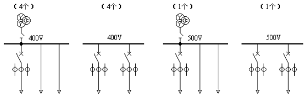 (1) 所接变压器可为双绕组变或三绕组变,接双绕组变压器则有600V和400V两个电压等级;接三绕组变压器则有600V、500V和400V三个电压等级。