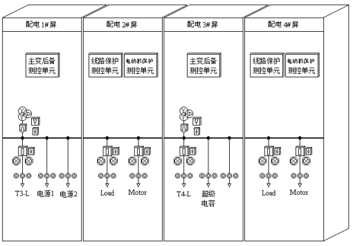 (4)配电站4#屏柜:配1个DCAP -5000线路保护测控箱(兼有中低压线路阶段电流保护及断路器测控功能)、1个DCAP-5010电动机保护测控箱(兼有电动机保护及断路器测控功能)。